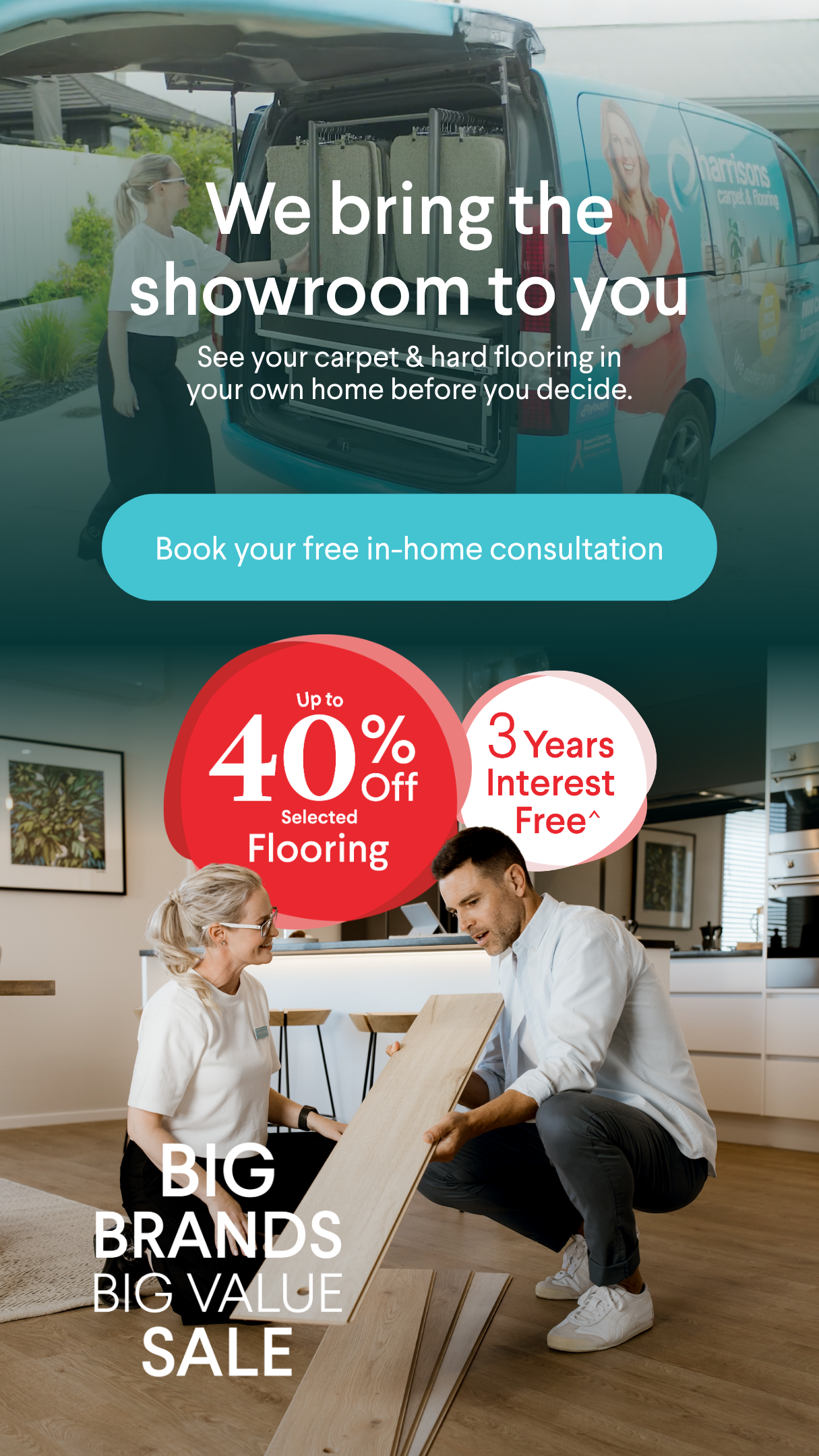 Your local Harrisons Flooring expert will bring 500+ full sized samples to help you pick the right floors, measure up and give you a detailed price.